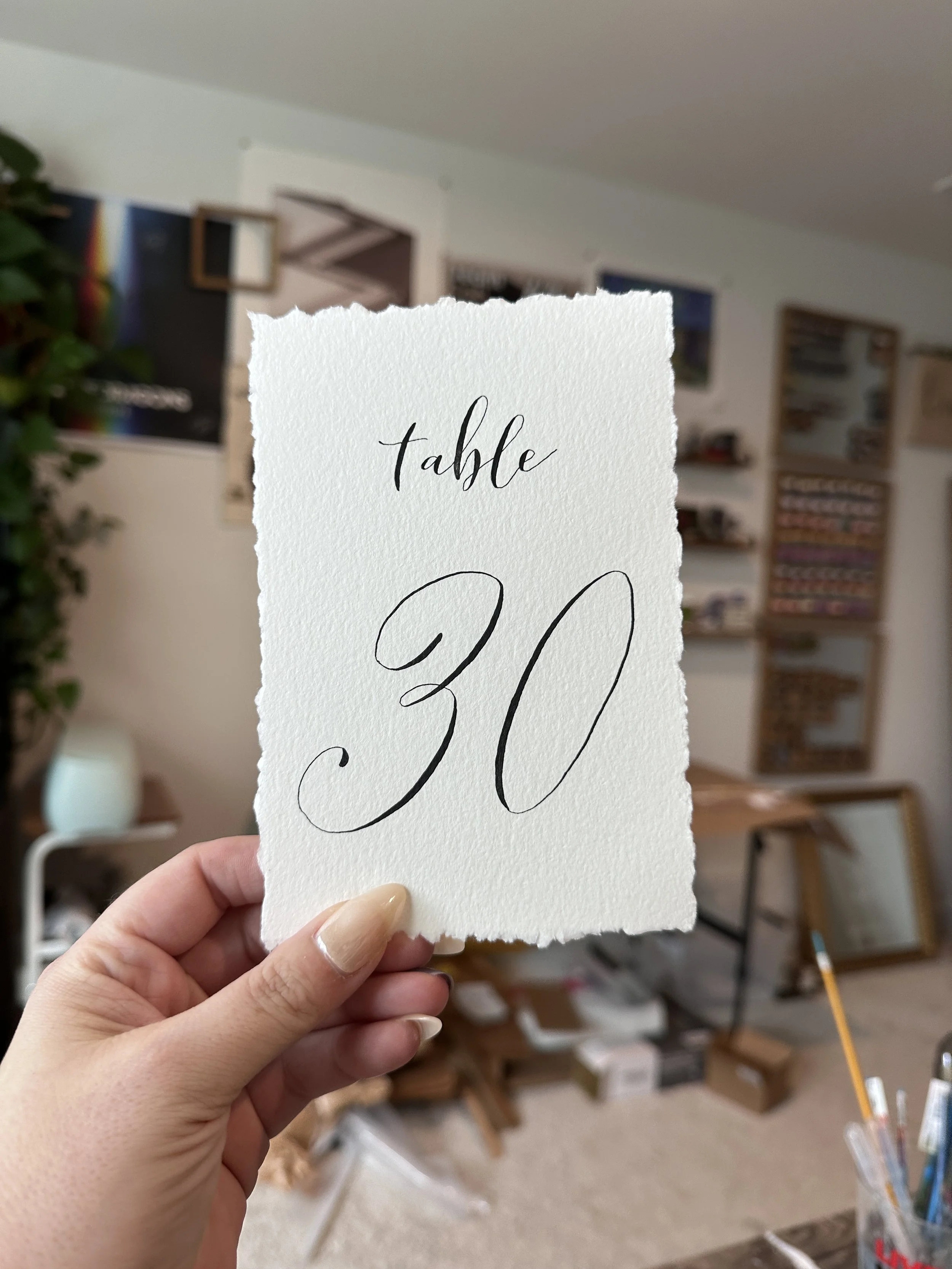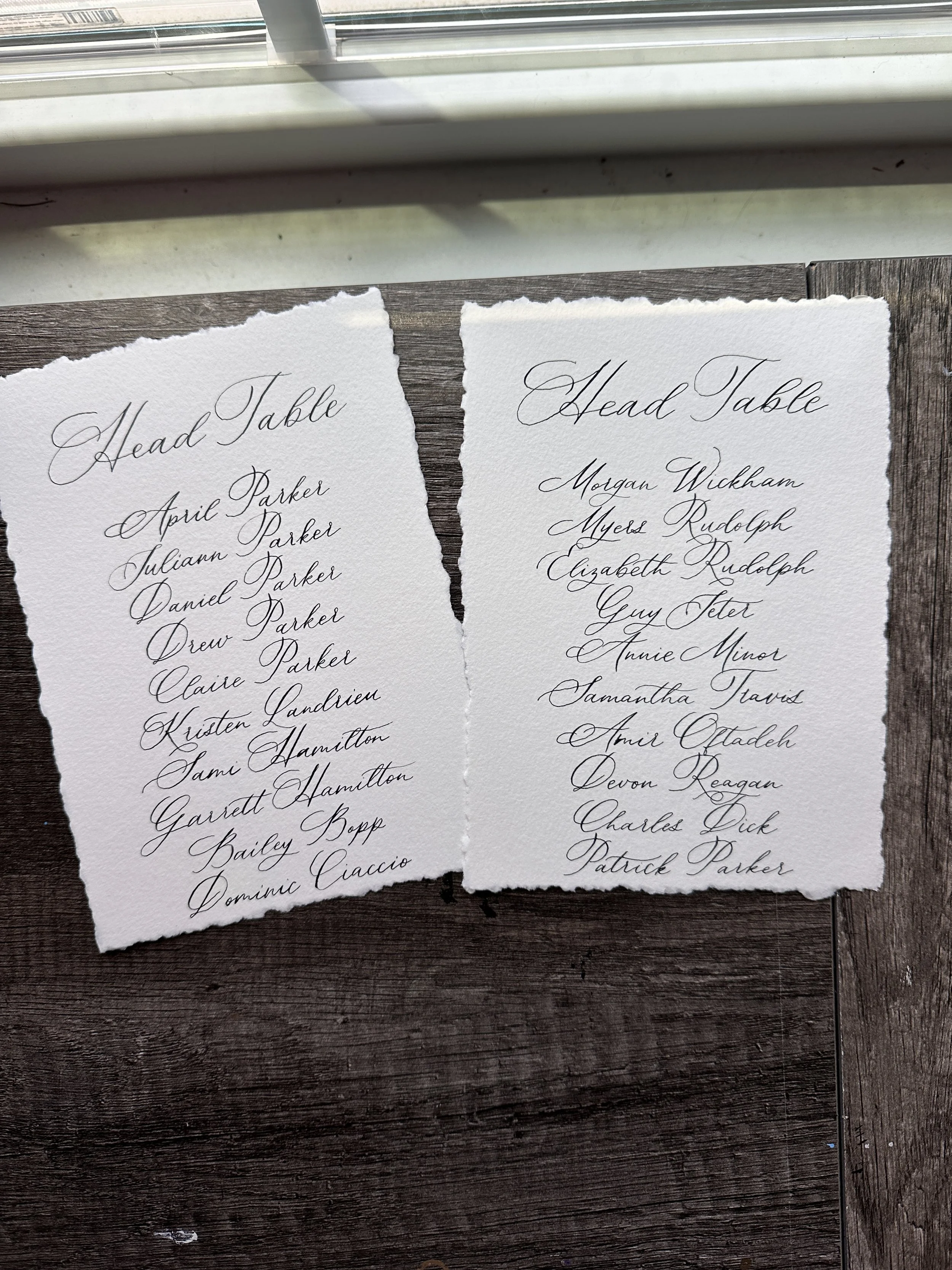 From table numbers to bar menus, elevate your event signage with custom calligraphy on paper